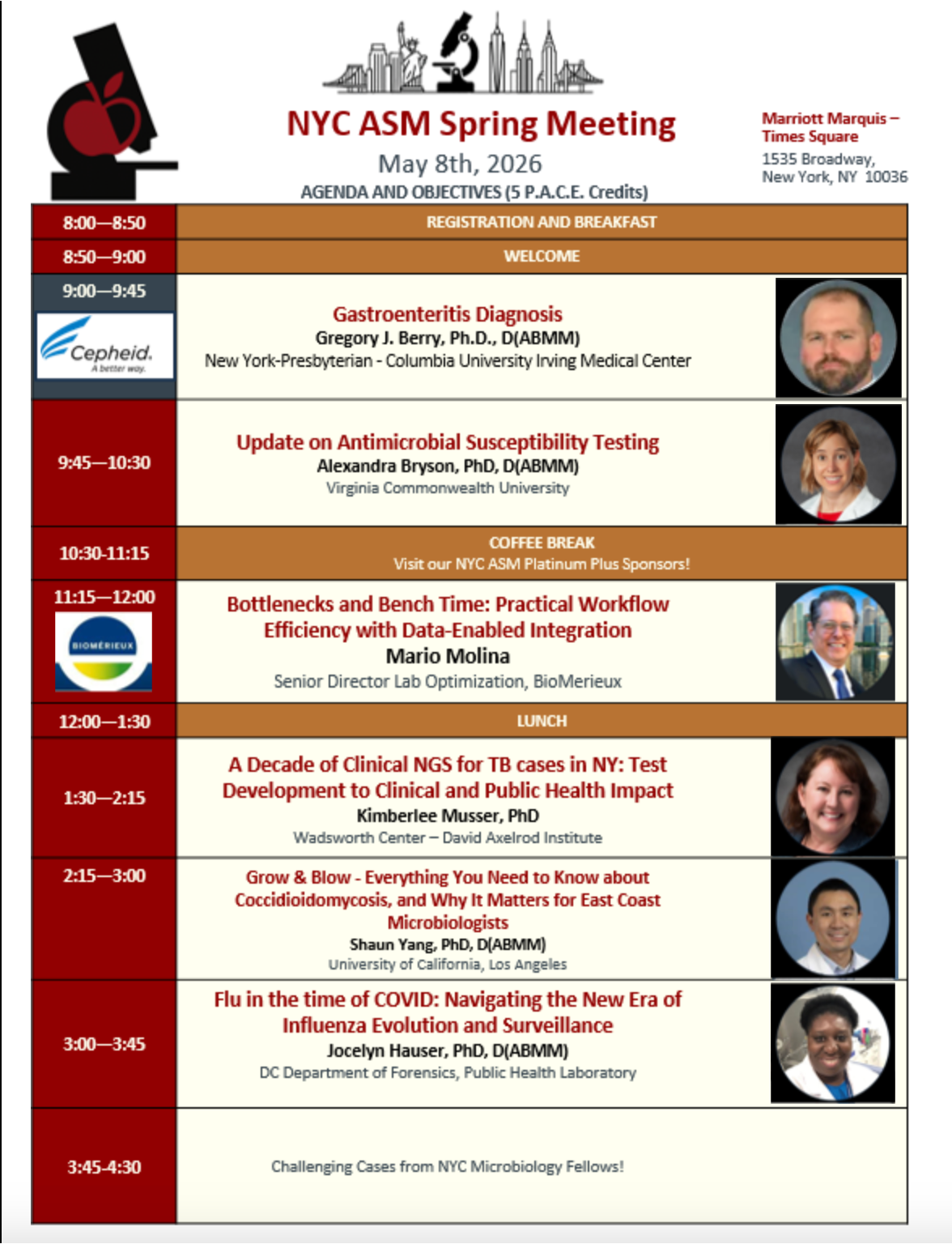 Taking place at the Marriott Marquis Hotel in Times Square, May 8th, 2026, the NYC ASM 2026 Spring Meeting will bring together clinical microbiology and infectious disease experts from across the country for a dynamic day of learning, discussion, and case‑based insights.